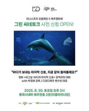 이니스프리 모음재단이 오는 30일 롯데시네마 제주연동에서 열리는 ‘그린 씨네토크’ 참가자를 모집한다.이번 프로그램은 2025 제주 그린어워드와 연계한 환경 영화 상영 및 관객과의 대화(GV) 행사로 마련됐다.상영작은 다큐멘터리 씨그널: 바다의 마지막 신호다. 영화는 해양 쓰레기, 고스트 피싱, 해수면 상승 등 바다의 위기를 세계 각국 7인의 시선으로 담아낸 작품이다.상영 후에는 박정례 감독과 해양환경단체 디프다제주의 변수빈 대표가 함께해 촬영 비하인드와 해양 보전 실천 방안을 관객과 나눈다.이번 프로그램은 약 2시간 30분간 진행되