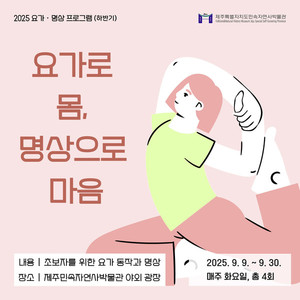 제주민속자연사박물관은 오는 9월 9~30일 매주 화요일 오후 7시 야외광장에서 성인을 대상으로 한 요가·명상 강좌 ‘요가로 몸, 명상으로 마음’을 운영한다.이번 강좌는 고요한 저녁 시간, 자연과 함께하는 야외 프로그램으로 일상에 지친 몸과 마음을 회복하고 내면의 평온을 찾고자 하는 이들을 위해 마련됐다.전문 요가 강사 비디아와 위재충이 이끄는 수업은 남녀노소 누구나 쉽게 따라 할 수 있는 안전한 동작으로 구성되며, 싱잉볼 테라피를 통해 몸과 마음의 이완과 마음챙김의 시간을 제공한다.프로그램은 오는 8월 20일 오전 10시부터 박물관