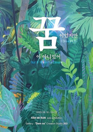 제주에서 작업 중인 조각가이자 화가 김미란 작가가 담소창작스튜디오에서 '꿈'을 매개로 한 새로운 회화 세계를 펼친다. 담소창작스튜디오 갤러리(관장 김순관)는 오는 9월 2일까지 김미란 작가의 제17회 개인전 꿈이었지만 꿈이 아니었어를 개최한다고 밝혔다. 이번 전시가 열리는 담소창작스튜디오는 공공기관이 아닌 지역 독지가 김순관 대표가 2018년부터 운영해온 민간 창작 공간이다. 16개의 작업실을 젊은 미술작가들에게 무상으로 제공해왔으며, 2024년 6월부터는 갤러리를 개관해 입주작가 릴레이 전시를 이어가고 있다.올해 여덟 번째 열리는