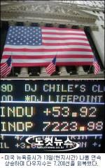 미국 뉴욕증시가 모처럼 나흘 연속 상승세를 이어가며 한 주를 마감했다.13일(현지시간) 뉴욕증권거래소(NYSE)에서 다우존스 산업평균지수는 전일 대비 53.92포인트(0.75%) 오른 7,223.98로 장을 마감했다.나스닥 종합지수는 5.40포인트(0.38%) 상승한 오른 1,431.50을 기록했고, 스탠더드앤드푸어스(S&P) 500지수도 5.81포