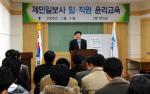 제민일보사는 2일 본사 3층 회의실에서 고태언 제주특별자치도자원봉사센터 사무처장을 초청, 자원봉사활동과 관련한 언론의 책임 등에 관해 임·직원 윤리교육을 가졌다.고 사무처장은 이날 강연을 통해 “기자는 현장에 있어야 알찬 기사가 나온다고 생각한다”며 “취재기자들이 자원봉사현장에서 ‘심장’을