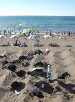 불볕더위인 요즘 제주시내에 위치한 삼양해수욕장의 검은모래사장에선 모래찜질이 한창이다.예부터 모래찜질 중에서도 검은모래찜질은 신경통, 비만증 치료, 관절염등에 효험이 있다고 알려져 있어 이곳 주민들뿐 아니라 도네 각처에서 삼양해수욕장을 찾고 있는 것이다.. 한편 삼양해수욕장에서는 지난 8월3일과 4일 이틀동안 제6회 검은모래축제를 통해 관광객유치 등 이곳 해