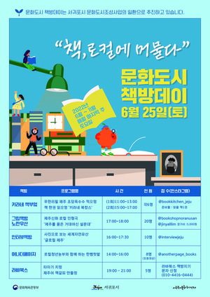 “너는 책방에서 뭐해?”하는 질문에 “책 읽어”하는 당연한 대답 이상을 원한다면 매주 토요일 열리는 책방데이를 추천한다.서귀포시는 문화도시 조성사업의 일환으로 6월 25일부터 12월까지 매주 토요일마다 지역 내 독립서점 5곳에서 ‘문화도시 책방데이’를 진행한다.지역에 자리 잡은 키라네 책부엌, 그림책방 노란우산, 인터뷰, 어나더페이지, 라바북스 등이 책(冊)과 방(房)을 연결한 특별한 거리로 찾을 이유를 만든다.이번 행사의 주제는 ‘책, 로컬에 머물다’다. 마을이 지니고 있는 노지문화의 색채를 이애하고 소통할 수 있는 기회를 만들기