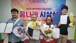 제주도농아복지관(관장 문성은)은 최근 서귀포시장애인종합복지관(관장 윤보철)이 진행한 '2024년 제주장애인 미술공모전-꿈나래' 대회 순수회화(미술)부분과 웹툰 분야에서 수상자 5명을 배출했다.수상자는 제주도농아복지관 프로그램 이용자인 한준걸·이철영·김승현·부용석·구순이씨다. 상들은 한국장애인고용공단 제주지사장상 1명(성인 디지털 작품), 사회복지법인 춘강 이사장상 3명(성인 미술/성인 디지털 작품), 서귀포시장애인종합복지관상 1명(성인 미술) 등이다.복지관 관계자는 "미술이라는 매개를 통해 개인의 역동성을 아낌없이 표현했다"며 "앞