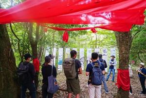 수풀과 나무로 우거진 기나긴 길을 지나면 비로소 설치된 작품이 모습을 드러낸다. 자연을 해치지 않고 주변 환경과 어우러진 작품들이 '공존'과 '생명' 그리고 '제주'를 이야기한다.2022 세계유산축전의 대규모 야외 전시 프로그램인 '불의 숨길 아트프로젝트'가 '물과 불 : 접경 공간'을 주제로 국내·외 작가 18명(16개 팀)이 참여한 가운데 성산일출봉과 거문오름용암동굴계 일대에서 펼쳐진다. 세계유산축전 사무국이 26일 '불의 숨길 아트프로젝트'의 일부 구간을 언론에 공개했다.이날 강지선 전시예술감독은 "대척점에 있는 물질인 물과