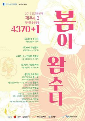 이달 3일부터 6일까지 ㈔제주4·3범국민위원회, 제주4·3평화재단, 서울특별시가 공동주최하고 JDC가 후원하는 제주4·3 제71주년 맞이 '4370+1 봄이 왐수다' 행사가 민주주의 심장인 서울 광화문 광장에서 열린다.세종대왕상 앞 중앙광장에는 붉은 동백꽃을 제주도 위로 투사한 형상의 추모조형물 등 추모공간이 설치된다. 또한 제주4·3에 대한 정보와 4·3을 소재로 한 보리아트 예술작품, 역대 대통령과 4·3의 관계를 다룬 사진을 모아놓은 전시동도 설치된다.특히 제주4·3의 상징인 동백꽃 추모 조형물은 시민들의 헌화(