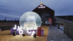 올해 연말 저지문화예술인마을을 찾는 사람들을 위한 작은 선물이 마련됐다. 제주현대미술관(관장 변종필)이 미술관 공공수장고 앞 야외공간에 설치한 대형 스노우볼 '희망의 구슬'이다.김시연·박서은 작가의 작품 '마라 73'과 종이로 제작한 곰, 사슴과 조명을 설치해 동화 같은 분위기를 연출했다. 반짝이는 조명 등으로 야간에도 감상할 수 있으며 내년 1월 10일까지 운영을 이어간다.이와함께 '희망'을 주제로 다양한 부대행사도 준비했다.우선 스노우볼 앞에 놓인 우체통에 넣으면 1년 뒤에 편지를 받아 볼 수 있는 '희망 우체통 : 미래로 보내