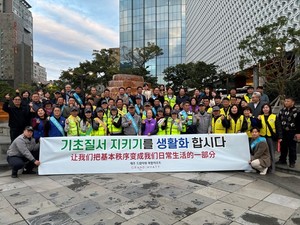 제주드림타워 복합리조트(대표이사 회장 김기병)는 20일 제주시 노형오거리 일대에서 지역내 7개 단체와 함께 시민·외국인을 대상으로 기초질서 지키기 캠페인을 펼쳤다.캠페인에는 노형동마을회장단협의회(회장 현상진), 노형지구대(대장 김상훈), 노형자율방범대(대장 양경택), 노형생활안전협의회(회장 강성무), 바르게살기노형동위원회(위원장 장군태), 노형동청소년지도협의회(회장 현상호), 1366제주센터(센터장 심화정) 등 7개 단체가 참여했다.이날 드림타워 임직원과 7개 단체는 드림타워 인근과 노연로, 월랑로 일대에서 시민과 관광객에게 무단횡