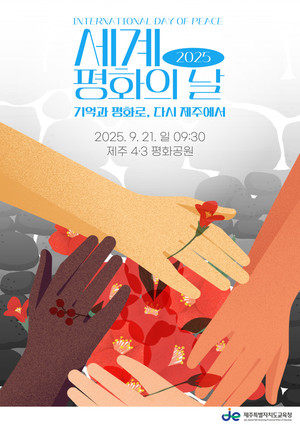 제주도교육청은 오는 21일 세계 평화의 날을 맞아 제주4·3평화공원에서 도내 192개교 대표 학생과 보호자, 도민, 외국인 등이 함께하는 '2025 세계 평화의 날 기념행사'를 개최한다.이번 행사는 유엔이 정한 세계 평화의 날과 세계 평화의 섬 제주 지정 20주년을 기념해 '기억과 평화로, 다시 제주에서'를 주제로 다양한 프로그램이 진행된다.오전 10시 오케스트라·학생 합창단·댄스 공연 등 문화 공연이 펼쳐지는 개막식을 시작으로, 오전 11시부터 오후 4시까지 4·3평화·인권 체험부스 15개가 운영된다.주요 체험·참여 프로그램은 평