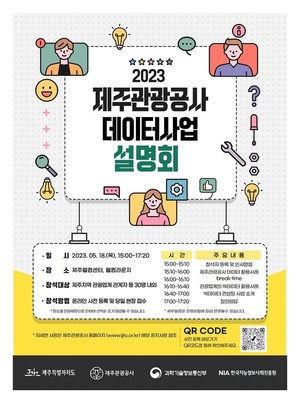 제주관광공사는 18일 제주웰컴센터 및 웰컴라운지에서 2023 데이터사업 설명회를 개최한다.이번 설명회는 제주지역 관광업계 관계자 등 30명 내외를 대상으로 공사의 데이터 활용사례와 관광업계 빅데이터 활용사례, 빅데이터 컨설팅 사업 소개, 질의응답 등 순으로 진행된다.참석을 원하는 업계 등은 온라인 사전 등록(https://docs.google.com/forms/d/14LBm_BpJTzd51b_lSzD8qrfEGLAXlJAPing4FjbeKqo/viewform?edit_requested=true) 및 당일 현장 접수가 가능하다.장소별