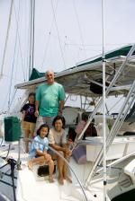 요트 한척에 의지해 세계를 여행하는 홍콩국적의 가족이 제주를 찾아 화제다. 42피트급 쌍동형 요트 Jade호를 타고 지난 24일 제주 김녕요트투어 계류장을 찾은 하이필드(58), 캠(39·여), 몰리(9·여), 낸시(8·여) 일행이 그 주인공. 팀의 청일점이자 아버지며 선장인 하이필드씨(58)는 16살때부터 바다항해를