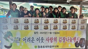 동홍동새마을부녀회(회장 김행미)는 16일 서귀포시 동홍동 산짓물 물놀이장에서 회원 20여명이 참여한 가운데 사랑의 김장 나눔 행사를 진행했다.부녀회는 이날 손수 담근 김장김치를 지역내 어르신 100가구와 장애인단체 3곳에 전달했다.김행미 회장은 "지역내 어려웃 이웃과 복지 사각지대에 놓인 분들이 소외되지 않도록 부녀회가 앞장서겠다"며 "겨울철 따뜻한 지역공동체가 될 수 있도록 최선을 다하겠다"고 말했다.