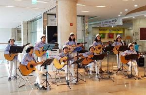 중앙병원, 12일 병원서'울라라 통기타' 음악회병원에 울려 펴진 아름다운 선율이 환자들을 위로했다.의료법인 중앙의료재단 중앙병원(이사장 김덕용)은 가정의 달 5월을 맞아 12일 병원에서 노형꿈틀작은도서관(대표 장동훈) 소속 '울랄라 통기타' 동아리(회장 배경안)를 초청해 환자 및 보호자를 위한 음악회를 열었다.이날 울랄라 통기타 동아리 단원 9명은 아름다운 통기타 연주로 환자 및 보호자 등 내원객들에게 쾌유를 기원하는 응원의 메시지를 전했다.중앙병원 관계자는 "가정의 달을 맞아 환자와 가족들을 위해 음