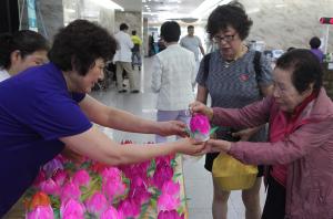 불교 호스피스 비움봉사단16일 제주한라병원서 봉사불교 호스피스 비움봉사단(이하 비움봉사단)이 부처님 오신 날을 앞두고 제주시내 병원을 방문해 환자들의 쾌유를 기원했다.비움봉사단은 16일 제주한라병원(원장 김성수)을 방문해 환자와 가족 등 내원객을 대상으로 떡과 봉축 등을 나눠주며 부처님의 자비와 광명이 함께 하길 기원했다. 비움봉사단은 지난 2012년부터 매주 금요일마다 제주한라병원을 찾아 말기 암 환자 등을 대상으로 정서적 안정 등을 지원하고 있다.제주한라병원 관계자는 "부처님 오신 날을 맞아 비움봉사단 단원들이