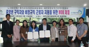 제주중장년일자리희망센터 17일비정규직근로자지원센터와 협약제주지역 중장년 구직자와 비정규직 근로자들을 위한 근로환경 개선이 추진된다.제주중장년일자리희망센터(소장 강수영)와 제주특별자치도 비정규직근로자지원센터(센터장 양경호)는 15일 근로자종합복지관에서 도내 중장년 구직자 및 비정규직 근로자 지원을 위한 업무협약을 체결했다.이날 협약에 따라 양 기관은 중장년 구직자의 경력 개발과 취업지원 및 비정규직 근로자의 근로환경 개선과 권익 보호 등에 협력키로 했다.세부적으로는 중장년 및 비정규직 근로자들을 대상으로 생애경력설계 및 노동법률 교육