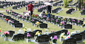 제69주년 현충일(6월 6일)을 이틀 앞둔 4일 오후 국립제주호국원 묘역에서는 한국전쟁 참전용사의 가족들이 참배하고 있다. 올해 현충일 추념식은 6일 오전 제주호국원을 비롯해 도내 5개 읍면 충혼묘지에서 거행된다. 김용현 기자