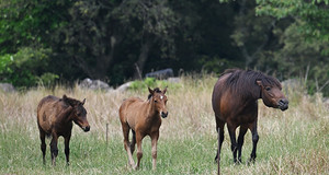 초여름 날씨가 이어진 11일 애월읍 목장에서는 제주말 가족들이 풀을 뜯고, 뛰어다니며 여유로운 시간을 보내고 있다. 김용현 기자