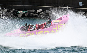 13일 제주지역 낮최고기온이 28.8도를 기록하는 등 본격적인 더위가 시작된 가운데 애월읍 해안에서는 제트보트가 시원한 물보라를 일으키며 묘기의 질주를 선보이고 있다. 김용현 기자