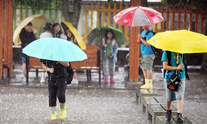 20일 올해 제주지역에 장마가 시작되자마자 호우특보가 발효되는 등 많은 비가 내렸다. 이날 오후 제주시 애월읍내 초등학교에서는 하굣길에 폭우속에서도 학생들이 서둘러 집으로 향했다. 김용현 기자
