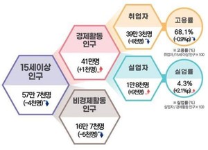 경기 침체 장기화에 이어 탄핵 정국까지 겹치면서 고용시장에 찬바람이 부는 가운데 도내 비경제활동 청년도 증가한 것으로 나타났다.19일 통계청 제주사무소에 따르면 지난해 도내 2030 청년층의 비경제활동인구는 총 3만6000명으로 집계됐다. 이는 전년 대비 1000명 증가한 것이다. 반면 같은 기간 4050 중장년층의 비경제활동인구는 총 2만6000명으로 전년 대비 6000명 감소했다.특히 20대 청년층의 고용률은 59.7%로 전년 대비 5.3%포인트 하락하면서 코로나19 팬데믹 시기인 2021년(55.8%) 이후 다시 50%대로 떨