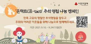 QR코드로 비대면 간편 기부접촉 최소화 마음은 극대화작년 법인기부 53.6% 감소기업 등 적극적인 참여 절실코로나19 장기화에 따른 경기 침체로 추석 명절 어려운 이웃과 함께 하려는 온정의 손길이 크게 줄면서 제주사회복지모금회가 '온택트(溫-tact) 추석명절 나눔캠페인'을 진행한다.7일 제주사회복지공동모금회에 따르면 코로나19가 불어닥친 후 지난해 추석 명절 모금기간(9월 17일~10월 15일)에 모인 성금은 4억5000만원이다.2019년 추석 명절 모금기간(8월 30일~9월 27일) 마련된 성금(6억9800만원)과 비교하면 2억