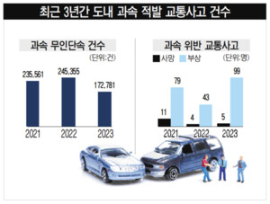 제주지역 과속 운전으로 인한 인명피해가 속출하면서 차량 운전자들의 각별한 주의가 요구된다.12일 제주경찰청에 따르면 최근 3년(2021~2023년)간 과속 운전으로 인해 발생한 교통사고는 2021년 43건(사망 11명·부상 79명), 2022년 25건(사망 4명·부상 43명), 지난해 47건(사망 5명·부상 99명)으로 나타났다.과속 운전 단속 건수도 매년 수십만 건에 달했다.같은 기간 과속 무인단속 건수는 2021년 23만5561건, 2022년 24만5355건, 지난해 17만2781건으로 집계됐다.실제 지난달 28일 오전 2시13