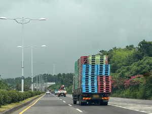 제주지역 도로 곳곳에 안전장치를 제대로 하지 않은 적재 불량 화물차들이 운전자의 안전을 위협하고 있다.21일 오전 제주시 평화로 인근 왕복 4차선 도로에서는 대형 화물차들이 여러대 주행하고 있는 모습을 확인할 수 있었다.이 대형 화물차들은 저마다 산업 폐기물, 비료포대, 벌목한 나무 등 적재물을 가득 싣고 덮개 없이 아슬아슬한 운행을 이어가고 있었다.한 5t 트럭은 여러 개의 파레트(운반용 합판)를 가득 싣고 빠른 속도로 달리면서 뒷칸에 있던 적재물들이 덜컹거리고 있었다.이 과정에서 대형 화물차에 실려있는 적재물들이 안전장치 없이