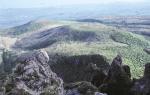 ◈방애(방아)오름 역사적인 2002한일월드컵을 앞둔 지난 5월 26일 한라산 백록담에서는 철쭉제를 겸한 월드컵 성공기원 봉수제가 열렸다. 백록담에 올라 제주도땅을 내려다보면 제일 먼저 눈에 들어오는 것이 수많은 오름들이다. 특히 동쪽과 서쪽에는 수많은 오름군락이 오밀조밀하게 늘어선 모습이 장관이다. 이렇게 수많은 오름들 중 백록담에 가장 가까이에 위치한 오