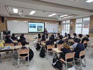 세계문화유산보존사업회(이사장 김택남)와 제주특별자치도가 공동 주최하고 제민일보(대표이사 오홍식)가 후원하는 ‘공동체로 배우는 제주해녀문화 - 불턱 아카데미’가 지난 25일 안덕초등학교 5학년 2반 학생들을 대상으로 열렸다. 이번 불턱 아카데미는 유네스코 인류무형문화유산으로 등재된 제주 해녀문화의 가치를 알리고 청소년들에게 생생한 교육의 장을 제공하기 위해 마련됐다.△세계가 인정한 ‘아시아의 인어’강사로 나선 김주현 미디어경인 경제부장은 “여러분들이 해녀를 모르는 친구들에게 그 위대함을 알려주는 것이 중요하다”고 서두를 열었다.김주현