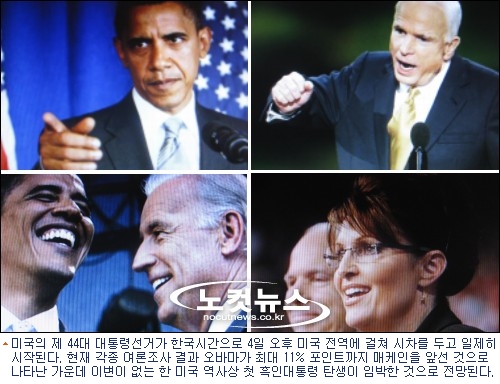 미국의 제44대 대통령 선거가 4일(이하 한국시간) 오후 2시 뉴햄프셔주의 작은 산골마을 딕스빌 노치에서 시작됐다. 딕스빌 노치에서 투표에 임한 유권자는 모두 21명으로 CNN방송은 오바마가 15표, 매케인이 6표를 얻었다고 보도했다.