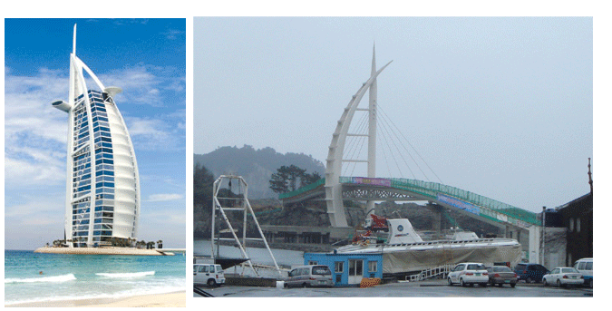 언뜻보면 두바이 버즈알아랍 호텔을 닮은 형태는 글로벌시대를 지향하는 디자인의 의지가 돋보인다. 디자이너가 원했던 원하지 않았던 사실 이 형태가 비슷함을 연상하는 것은 사실이다. 하지만, 그것을 긍정적으로 수용했다는 사실은 서귀포시가 지향하는 국제화의 방향이 무엇인가를 분명하게 드러낸다고 할 수 있다. 서귀포라는 조그마한 동네에 불과한 지역을 세계속의 미항으로 키워나가기 위해서는 국제적인 안목과 시각을 가질 필요가 있는 것이다. 제주도가 반드시 올레니, 돌하르방이니 하는 것에 디자인을 국한하지 않고 국제적인 안목으로 도시를 바라보았다는 점은 매우 시사하는 바가 크다고 할 수 있다. 외국의 관광객이 찾아오는 서귀포에서 에펠탑을 볼 수 있고, 피라미드를 볼 수 있는 것도 신선한 미적 쾌감을 줄 것이라고 생각되기 때문이다.