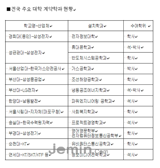 여기에는 '계약학과'가 한 가지 대안이 될 수 있다. 성균관대-삼성전자 간 휴대폰학과나 부산대-LG전자 간 냉동공조에너지학과의 경우처럼, 대학이 국가나 지자체·기업 등과 계약을 맺고 특정 분야의 정규 학과를 개설, 맞춤형 인재육성에 투자하는 것이다.