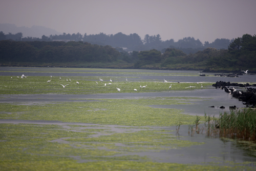 | 광치기 해변에서 식산봉으로 가는 길에 지나치게 되는 방조제 길 옆의 저수지. | ||