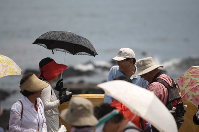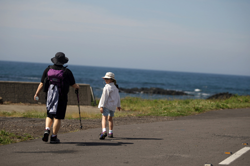| 제주올레 제5코스에서 만난 부녀 올레꾼. 아침 햇살 아래 다정히 걷고 있는 두 부녀의 모습이 아름답다. | ||
