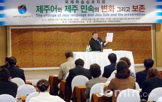 ![]() 고재환 전 제주교대 교수 "고양이 목에 누가 방울을 달 것이냐를 고민할 때입니다." 고재환 전 제주교대 교수는 "제주도민이 제주어 사용을 일상화해야 한다"면서 "그렇지 않으면 제주 정신의 그릇인 제주어는 결국 사라지게 되기에, 제주어를 어떻게 활용할 것인지 제주사회 지혜가 모아져야 한다"며 이같이 말했다. 고 교수는 "제주어의 올바른 전승과 보전을 위해서는 행정과 학교, 가정에서 제주어에 대한 인식 변화가 우선되어야 한다"면서 "특히 언론과 방송에서 제주어 관련 프로그램이나 지면 제작이 뒤따라야 한다"고 지적했다. 그는 "제주어의 일상적 사용은 현실적으로 쉬운 일이 아니"라며 "따라서 제주어 보존과 전승 차원에서라도 일상적인 제주어 사용을 권장하는 방안을 행정 시책으로 추진할 필요성이 있다"고 밝혔다. 고 교수는 "제주의 무형유사인 제주어 보존과 연구 수행을 위한 제주도 단위 연구소가 전무한 실정"이라며 "연구 기능의 활성화를 위한 연구 인력 확보를 위한 지원 및 연구 활성화를 위해 제주어 전문 연구기관이 조속히 설치돼야 할 것"이라고 강조했다. ![]() 허성수 제주어보전회 이사장 "제주어 발전과 보전은 제주어 사용의 일상화에 있지만, 제주어 사용은 노인들의 말로 인식되고 있습니다." 허성수 사단법인 제주어보전회 이사장은 "급격한 생활환경의 변화로 전래적인 제주어가 1년에 수십개의 단어가 사라지고 있다"며 이같이 밝혔다. 지난 2008년 사단법인 제주어보전회가 창립된 이래 제주어확대 보급 방안세미나, 제주 도새기축제행사 제주어퀴즈대회, 자연생태탐방 제주식물 연구회 활동, 제1회 제주특별자치도지사기 제주어말하기대회 등 굵직한 제주어 행사를 치러온 허 이사장은 제주어 보전을 위한 일상화 대책을 주문했다. 허 이사장은 "제주어말하기대회를 개최해보니 각 마을마다 제주어 능력이 뛰어난 주민들이 있었다"며 "마을 훈장처럼 이들로 하여금 읍면동 교육시설에서 청소년들을 대상으로 제주어 프로그램을 재미있게 진행하면 효과를 볼 수 있다"고 말했다. 그는 "제주어를 방송매체에 체계적으로 보급하거나, 올레꾼들에게 제주문화를 알리는 책자를 펴내는 일, 관광가이드 대상 제주어 교육 등을 위해선 제주어 연구기관이 필요하다"고 강조했다. |