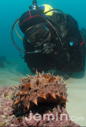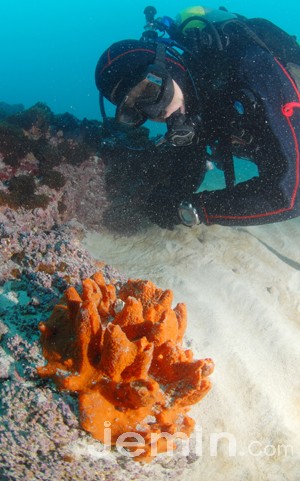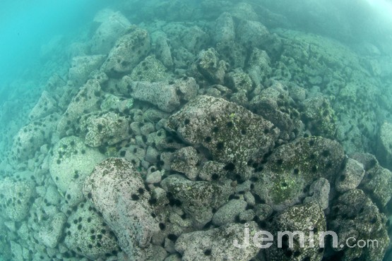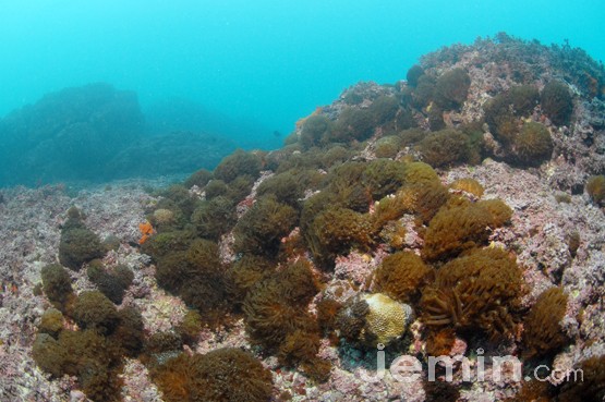 하지만 해안에서 수심 8m 지점까지는 자연 암반이 잘 발달돼 있지만 해조류는 간데없고 거품돌산호 만이 암반 전체를 차지하고 있다.