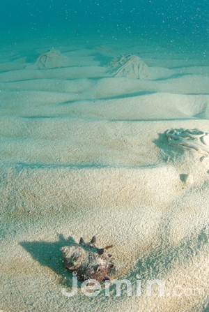 또 암반과 모래가 만나는 지점에는 다른 서식처를 찾아 모래밭을 가로지는 소라들도 심심치않게 보이고 있는 실정이다.
