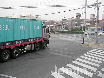 화북방면에서 제주항 방면으로 우회전하는 차량들 중에는 대형 화물·덤프 차량이 많지만 회전반경이 협소, 제대로 우회전을 하지 못하기 때문이다.