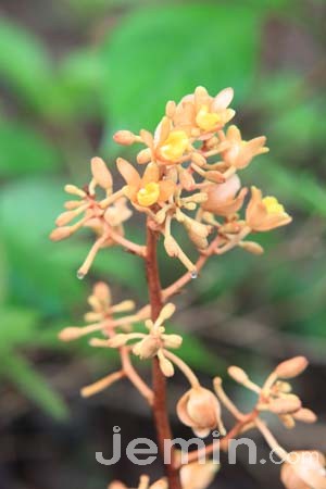 오름 주변지역은 과거부터 표고재배 등으로 많이 이용, 부식질이 많고 강수량도 비교적 풍부한 지역으로 다양한 식물이 분포하고 있다. 특히 으름난초·천마 같은 부생식물도 자주 관찰되는데 난과(科) 식물인 으름난초는 환경부지정 멸종위기야생식물 2급이다. 으름난초는 남방계 식물의 하나로 우리나라는 식물지리학적으로 분포의 북한계 지역에 해당한다. 잎이 없어 주로 낙엽수림 밑에서 뽕나무버섯과 공생한다.