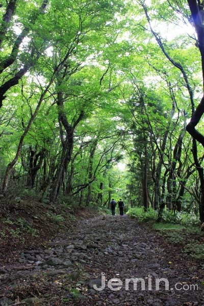 임도 입구 한 쪽에 차를 세우고 고즈넉한 숲길 1.1㎞를 20여분 걸어 들어가면 표고재배장이 나온다. 못된 오름꾼들의 '손장난' 때문에 임도 초입에 '관계자외 출입금지'라는 팻말을 서있다.