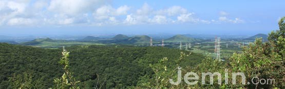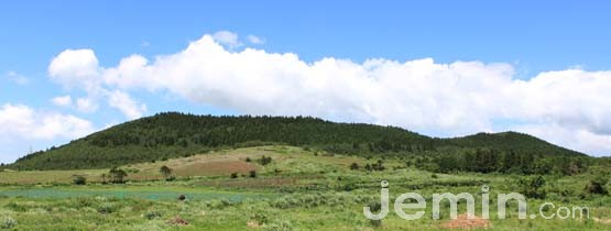 삼림욕 산행에 안성맞춤…다돌아도 1시간20분 충분왕이메오름은 서부지역 오름군의 제왕이다. 이름에 왕이 들어간 것도 그렇고 자리한 위치는 더욱 그러하다. 왼쪽 조근대비악을 시작으로 뒤쪽과 오른쪽까지 10여개의 오름의 호위를 받고 바로 앞에 경호대장인 괴수치와 돔박이를 두고 멀리 서쪽 바다를 향해 있는 모습이 영락없는 임금이다. 더욱이 산굼부리와 달리 '물의 힘'을 빌리지 않고 서부지역 최대의 분화구를 만들어낸 화산의 폭발력도 왕임을 인정하게 한다. 크고 넓은 분화구와 함께 울창한 수풀·개활지 등 왕이메오름은 거의 모든 것을 갖춘 오름의 종합선물이다.