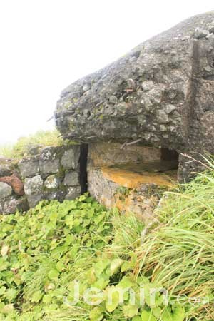정상에는 환기구 역할 등을 했던 굴뚝같은 통로가 정상부를 뚫고 나와 있고 북쪽 바다를 향해선 진회색의 토치카가 여전히 입을 벌린 채다. 흉물임에는 틀림이 없지만 일본이 제주도를 저항 기지로 삼았던 침략의 역사를 증언하고 있다는 점에서 등록문화재 제307호로 지정, 관리되고 있다.
