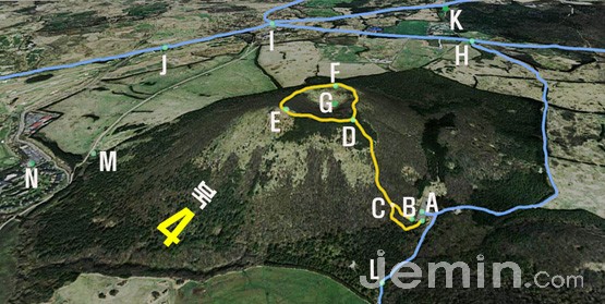 아름다운 경관을 뒤로 하고 발을 떼면 10분만에 정상부 갈림길이다. 하단부 갈림길을 거쳐 내려오면 다시 10분, 출발한지 50분 정도다. 제주시에서 20㎞ 거리 왕복 운전시간을 감안하더라도 2시간이면 탐방을 끝낼 수 있는 '깔끔한' 오름이다. 하지만 출발부터 정상부 갈림길까지 계속해 가파른 오르막이어서 구간별 난이도는 '상-중-하'로 볼 수 있다. 오르내리는 탐방로가 가팔라서 지팡이가 도움이 된다.