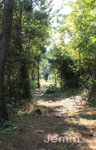 갈림길에서 이번엔 동쪽으로 난 탐방로를 5분 오르면 서모봉 정상(G)이다. 숲이 우거져 동쪽의 다려도나 서쪽의 함덕해수욕장은 나무 너머, 나무 사이로 보일 뿐이나 나름 감칠맛이 있다.