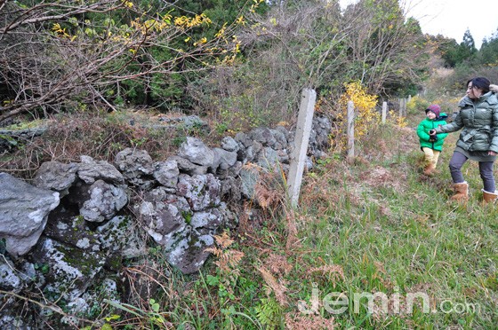 잣성의 흔적을 찾아 표선면 가시리를 찾았다. 목축문화를 중심으로 한 테마마을을 조성하고 있는 곳이다. 손전화 하나만 믿고 길을 나선 것도 그런 이유에서다. 날씨 탓에 마을 어르신을 직접 청하지 못하고 안내만 받는다. 길 안내가 구수하다. “일단 사잇길로 쭉 올라강 보믄 왼편에 무덤 같은 게 이실거라. 그 안터레 강 살펴봐봐. 뭐 보이지 안암서. 무슨 표지가 이실거라. 그냥 옛날부터 있던거난 이섬신가 하주”.