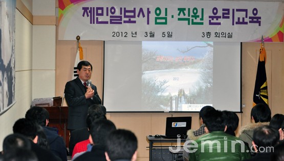 신명식 교통안전공단 제주지부장은 5일 오후 제민일보사 3층 회의실에서 열린 제민일보사 임·직원 윤리교육에서 이같이 강조했다.