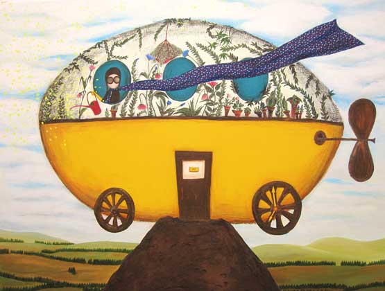 공간의 경계를 허무는 허문희의 상상은 더 이상 자연을 다치게 하지 않는 문명을 꿈꾸는 것이다. 하늘을 나는 대형 고래, 동물과 사람이 공존하는 빌딩, 오름에 걸터앉은 나무비행기, 이 모두가 허문희가 만들어낸 즐거운 세계다. 상상의 세계는 현실에 존재하지 않지만 작가 자신에게는 분명히 존재한다. 시각적으로 형상화된 세계는 그것이 현실과 똑같은 세계가 아닐지라도 그 어딘가에 세워 놓은 그녀만의 세계이자 풍경이다.