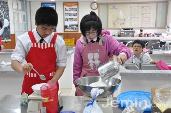 학생들은 김씨가 준 레시피에 따라 재료의 무게를 정확하게 저울에 달았다. 숨소리까지 죽여 가며 저울끝을 바라보는 아이들의 표정에 진지함이 가득하다.