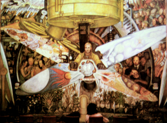 리베라의 벽화 중 명성을 떨친 벽화는 록펠러 센터의 벽화이다. 이 벽화는 1933년 벤 샨을 조수로 하여 그렸다. 그러나 리베라는 그 벽화에서 계급투쟁을 주제로 삼아 러시아 혁명의 주역인 레닌의 초상을 그림으로써, 미국 뉴딜 미술운동 공공사업촉진위원회(WPA)를 경악하게 하여 결국 벽화작업은 중지된 이후 철거됐다. 이에 대해 뉴욕의 진보적인 화가들은 항의 시위를 벌였다. 리베라는 그 때 번 돈으로 뉴욕의 뉴 포커즈 스쿨에 착탈식 벽화 21장을 제작했다. 리베라 벽화를 철거한 록펠러 센터의 벽에는 자본주의의 <진보와 변영>이라는 생기 없는 내용의 주문 벽화가 그려졌다. 그러나 리베라는 그 이듬해인 1934년 멕시코로 돌아와 국립미술관(National Palace of Fine Arts)에 철거된 록펠러 센터의 벽화를 비슷한 크기로 제작했다(富山妙子, 1985).