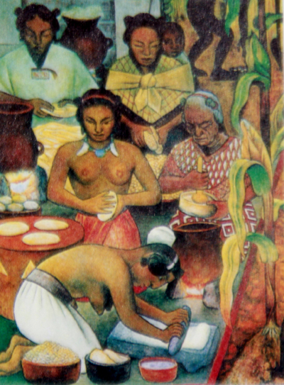 디에고 리베라(Diego Rivera, 1886~1957)는 멕시코 과나후아토에서 태어났다. 국립 산 카를로스 아카데미에서 호세 벨라스코에게 그림 지도를 받았다. 그는 첫 번째 유럽 여행 후 1911년 파리 몽파르나스에 살면서 1912년부터 후기 인상주의를 선호하여 입체주의 스타일의 그림을 그렸다. 이 무렵 피카소, 모딜리아니, 몬드리안, 립시츠, 세베르니와 교류했다. 1914년부터 리베라의 작품에는 멕시코 고유의 소재가 등장한다. 1919년 리베라는 화가이자 혁명가인 시케이로스를 파리에서 만나면서 미술의 사회적 역할의 방향을 전환했다. 1921년 멕시코로 돌아온 리베라는 장 샤를로, 카를로스 메리다, 페르민 레부알타스타 등과 함께 최초의 프레스코 벽화를 그렸다. 이후 리베라는 멕시코와 미국에서 많은 벽화를 제작했다. 특히 미국에서 그린 벽화로는 샌 프란시스코 증권거래소, 디트로이트 미술관, 록펠러 센터의 벽화 등 다수의 작품이 있다. 생전에 멕시코에서 유명해진 리베라는 1949년 1,200점의 작품을 가지고 국립박물관과 멕시코 미술궁에서 동시에 전시회를 열었다.